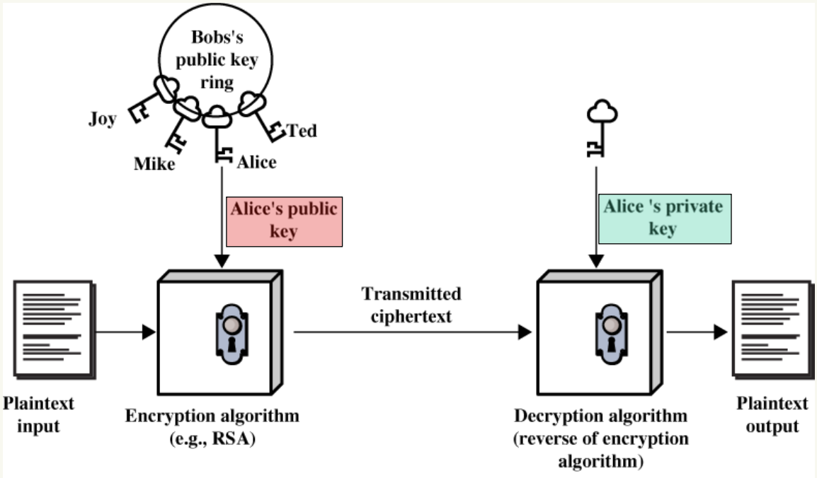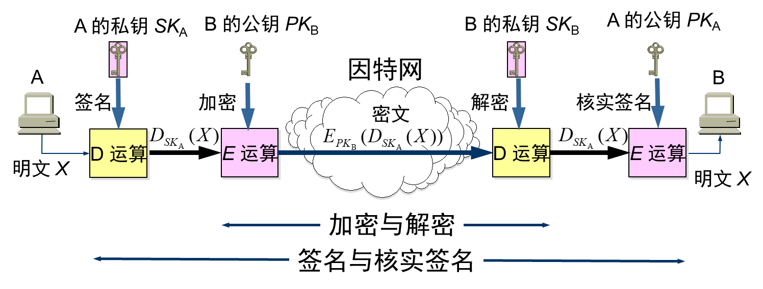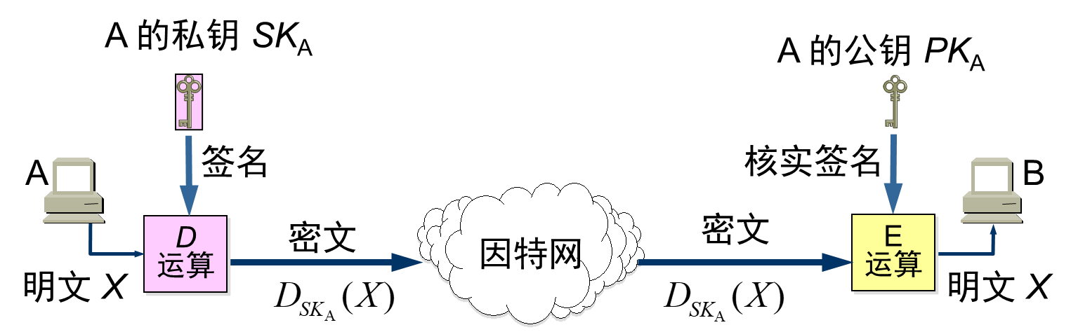 - 身份认证(Authentication):通过公钥密码学实现