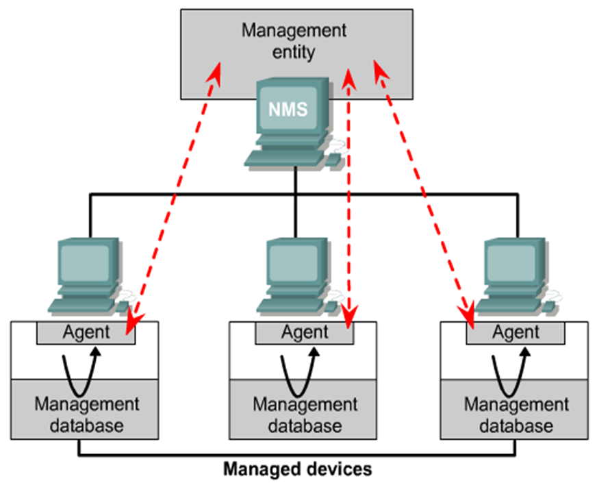 - 通过管理数据库(MIB)进行信息交流