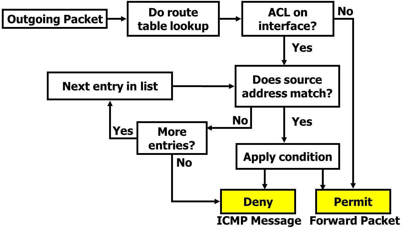 - 如果要让路由器拒绝某些数据包,则必须配置 ACL。否则,只要链路打开,路由器将接受并转发所有数据包