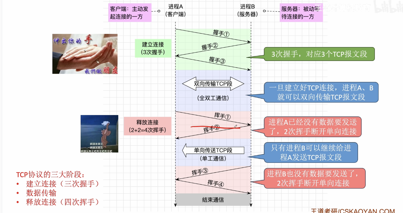 理解了 rdt,再回头看TCP的三次握手、滑动窗口、超时重传等机制,就会觉得豁然开朗,因为它们都是为了在 rdt 的基础上实现高性能的可靠传输。