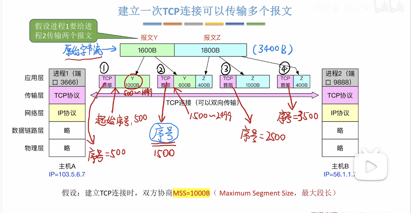 - 流水线机制:允许发送方在未收到确认前,连续发送多个分组。这正是你PPT中提到的 “滑动窗口协议” 和 “连续ARQ”。