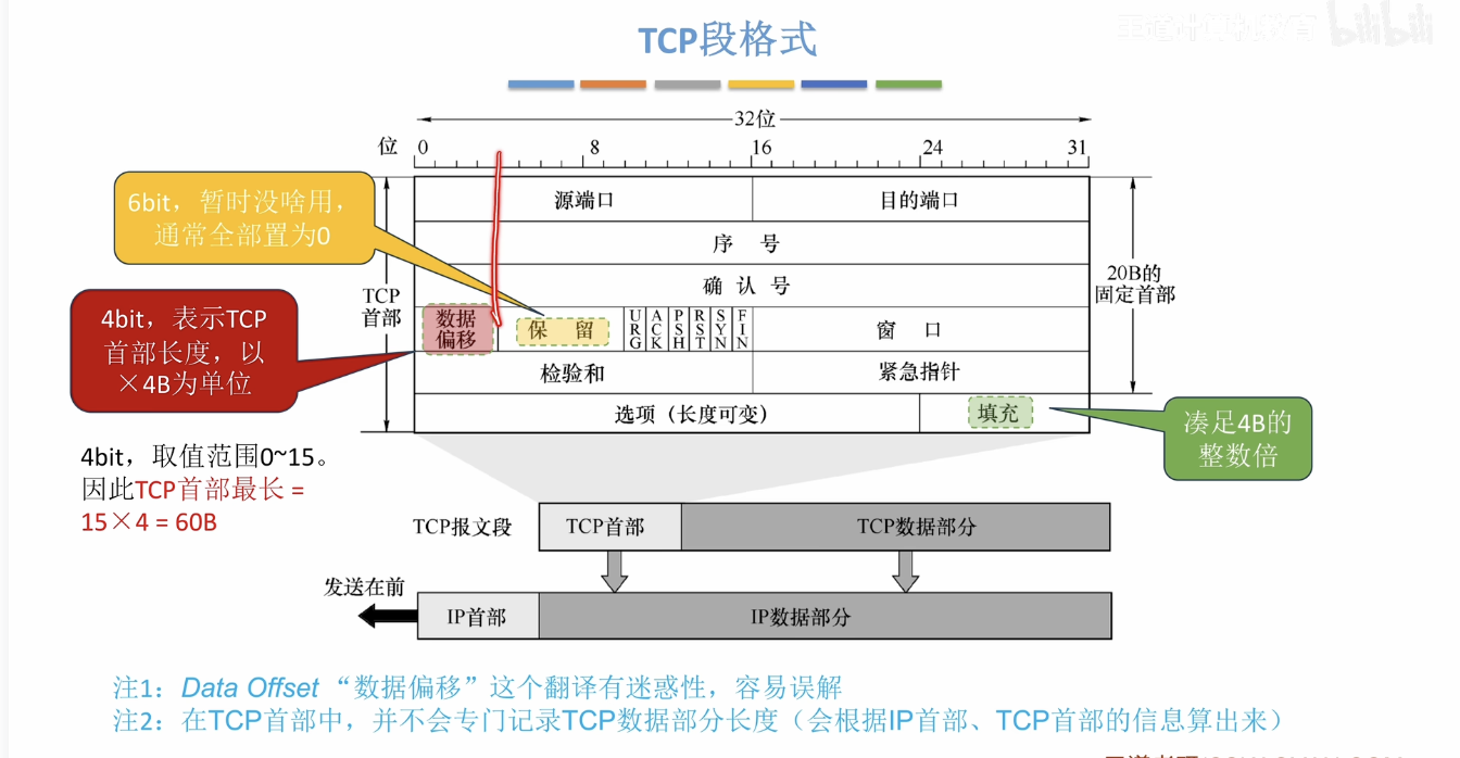 数据偏移部分实际上定义了TCP首部的长度—所以要计算TCP数据部分长度,必须要结合IP数据报的信息