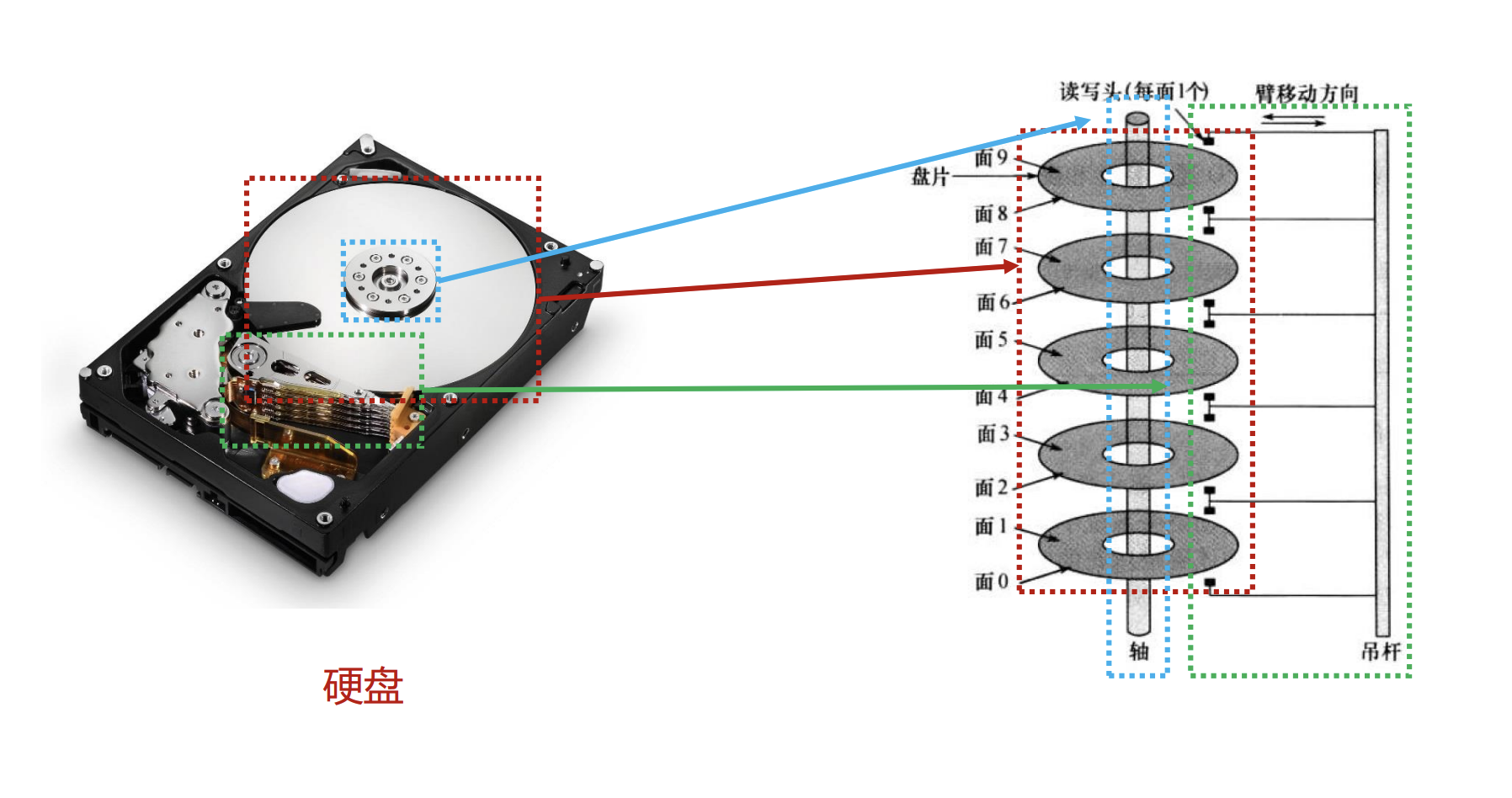 - 在读或写操作期间,磁头静止,而盘片在其下方旋转