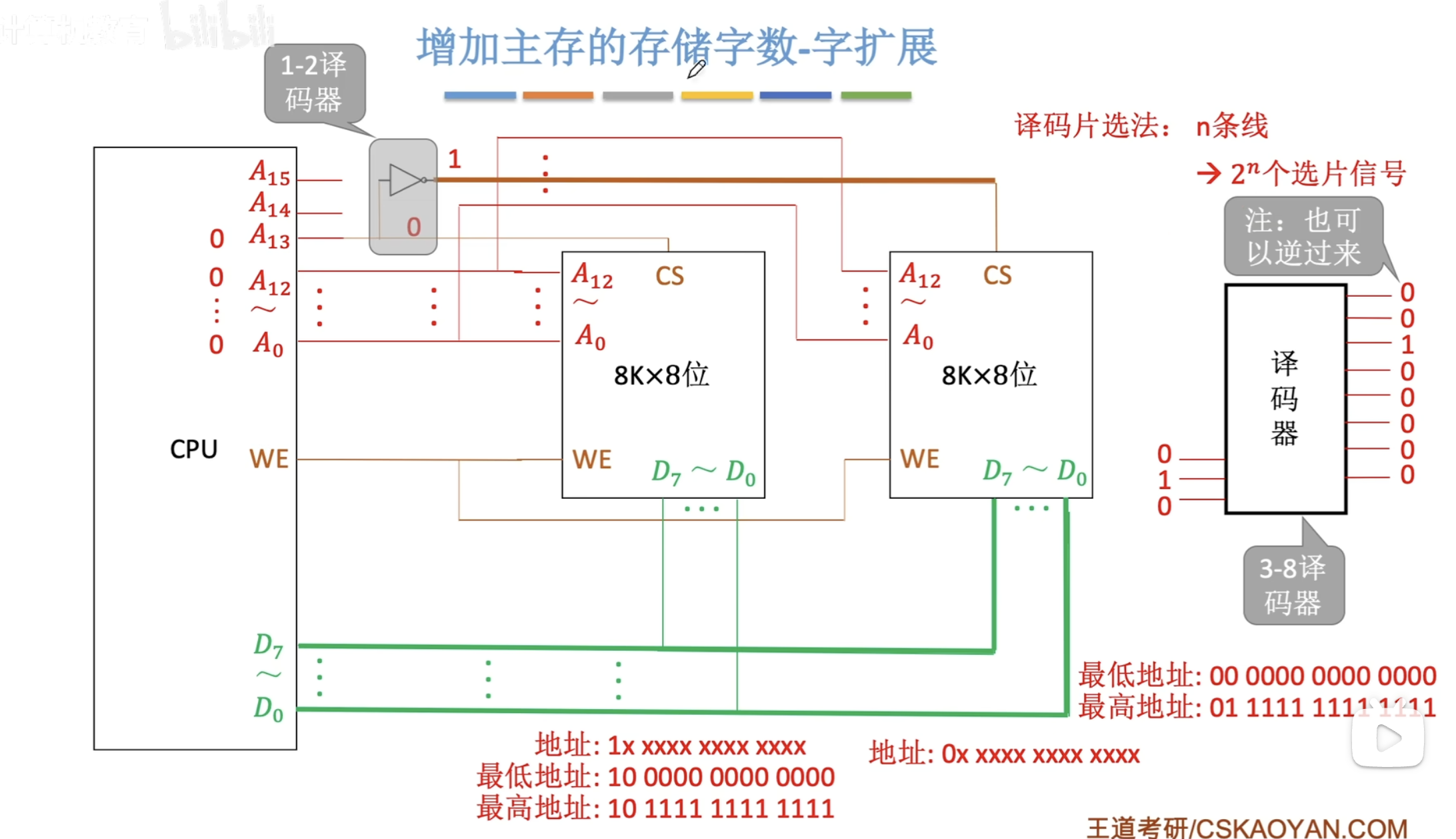如何优化线选法?—用译码器处理CPU的高位地址部分!