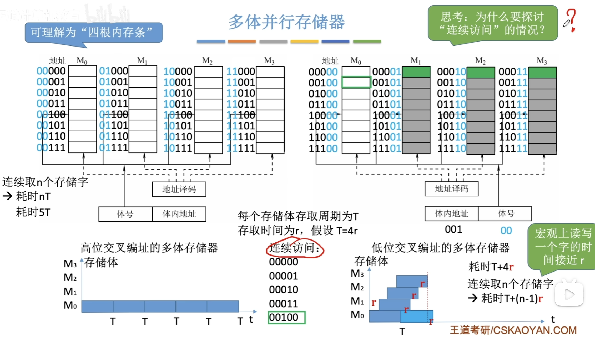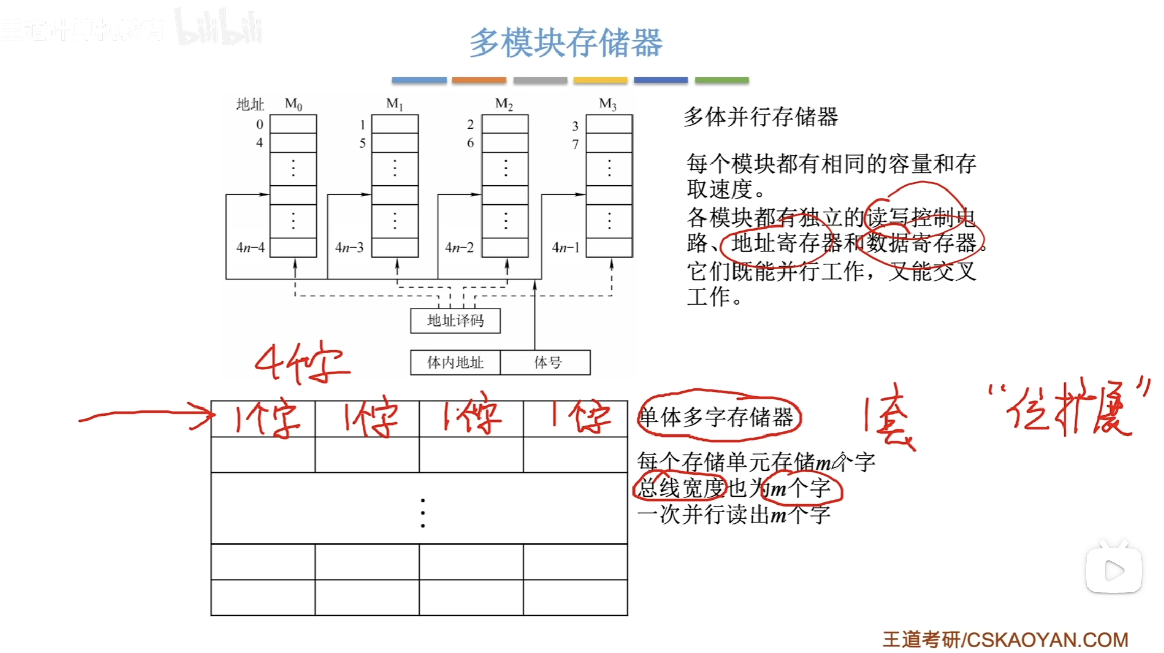 每次只能同时取m个字,不能单独取其中某个字,指令和数据在主存中必须是连续存放的