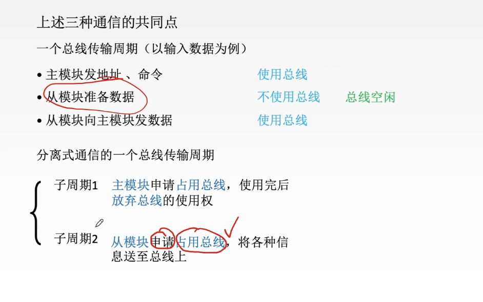 - 当总线在被使用过程中,其它设备不可以抢占