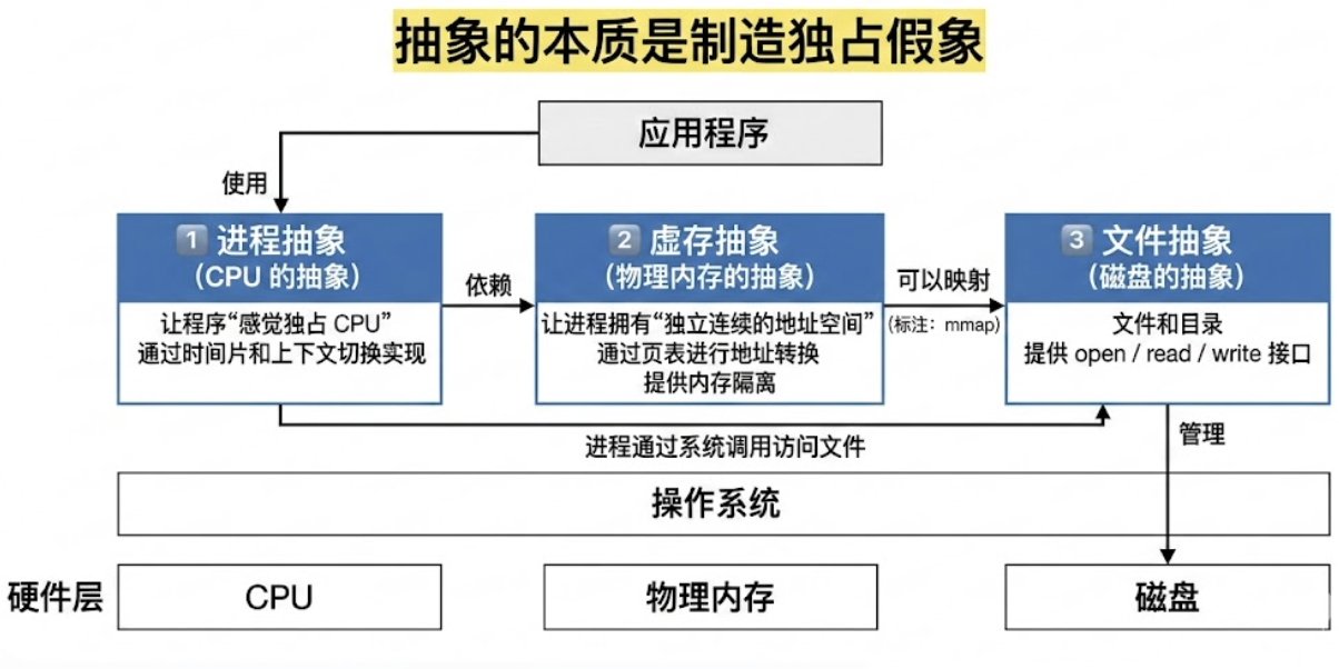 操作系统本质上,就是要把混乱的硬件,抽象成干净、可编程、可管理的对象
