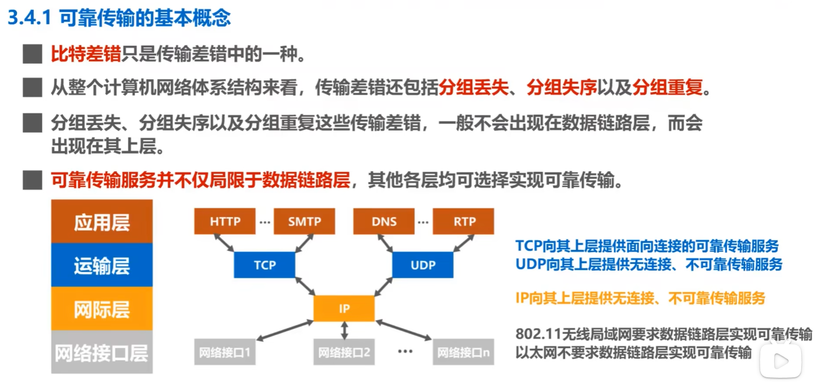 - 带有确认的无连接服务:不可靠的链接,例如无线网络:需要保证一定的通信质量(比如无线网络的传输),同时会损失一定的性能。