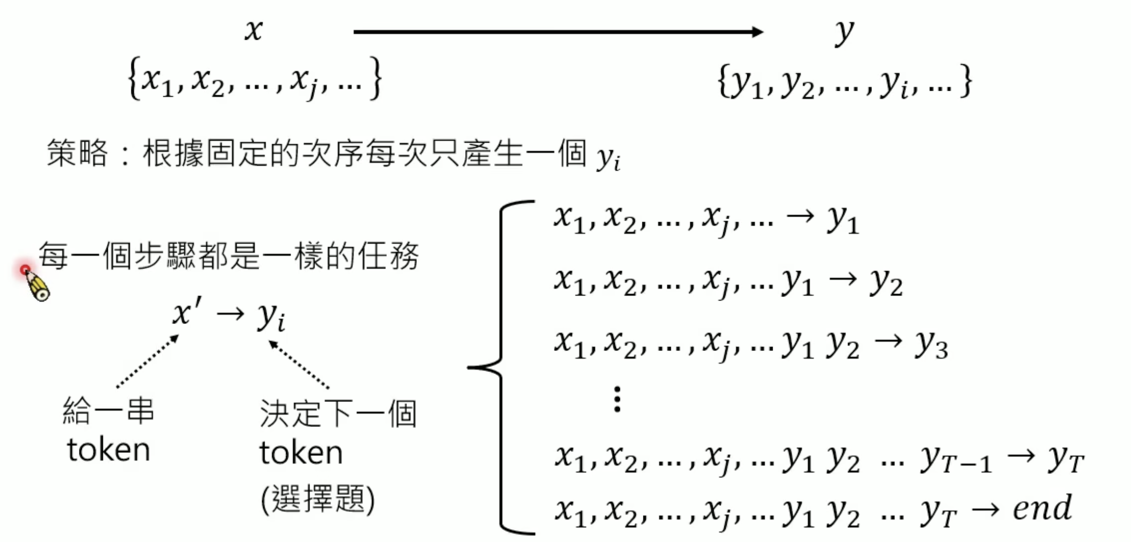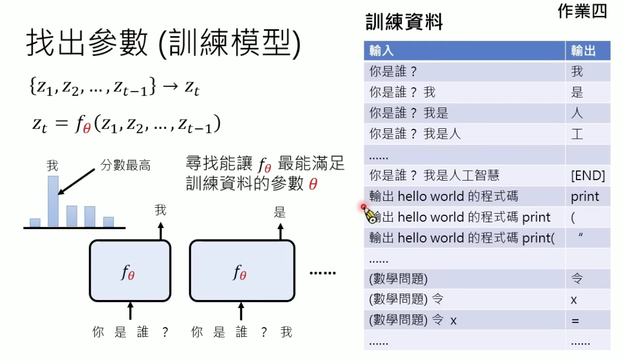 类神经网络:本质上是一个function,产生的是一个token的概率分布,给每一个token一个分数