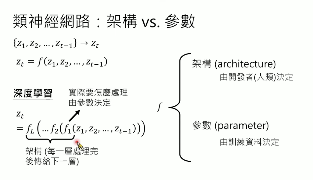 参数数量是架构的一部分,参数数值需要通过训练资料学习