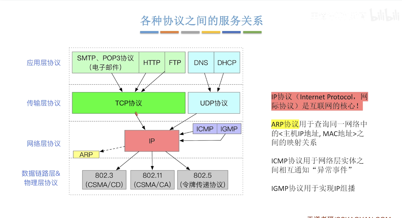 - 异构网络互联:如何让不同的底层网络技术(如以太网、Wi-Fi、3G/4G/5G)能够相互通信?(IP协议的统一作用)