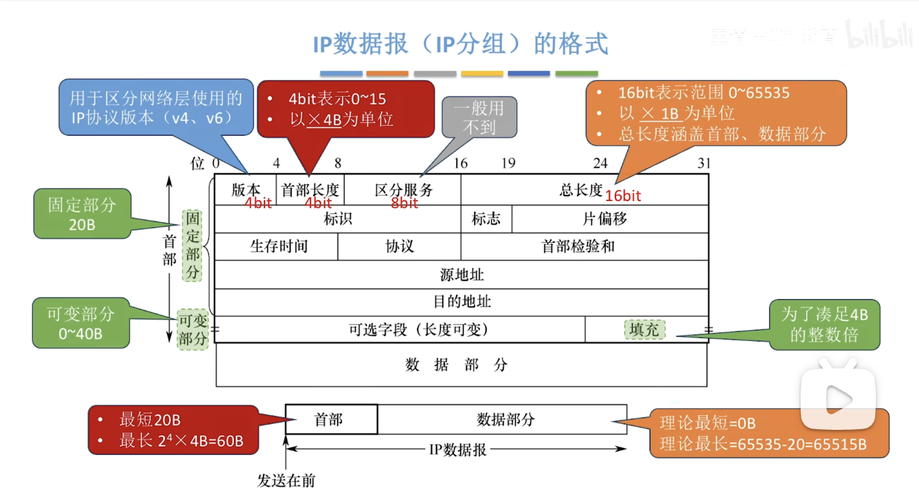 - 数据部分:来自传输层的报文(如TCP段或UDP数据报)。