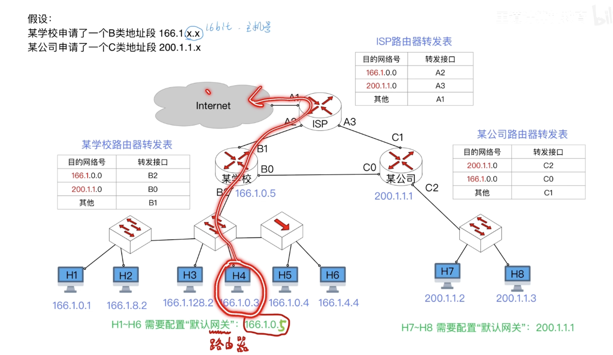 - 路由:数据包在复杂的网络拓扑中,如何选择前进的路径?(路由协议)