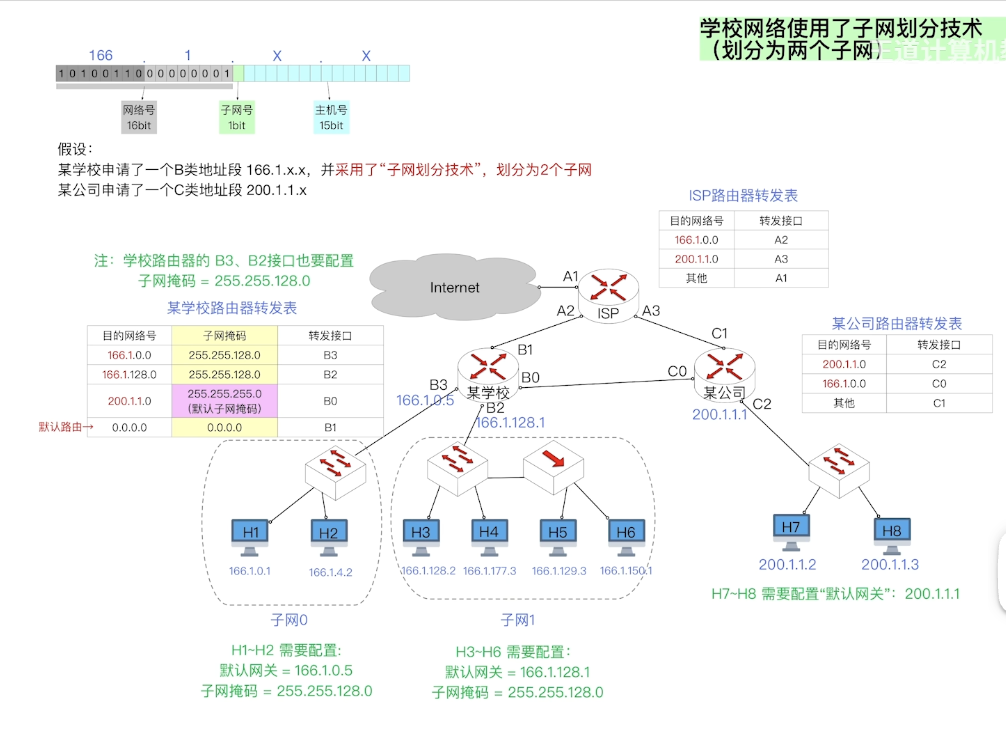 新技术要兼容老技术,比如:H1怎么到H7呢?—-默认子网掩码!反过来也类似,不过匹配的时候稍微复杂一点
