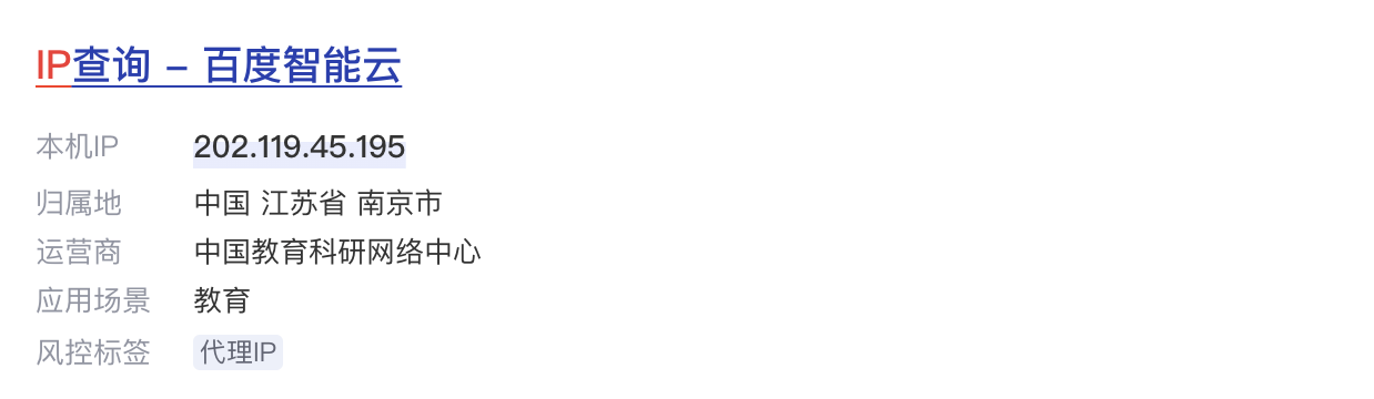现在,我们打开百度查询我们的IP地址!