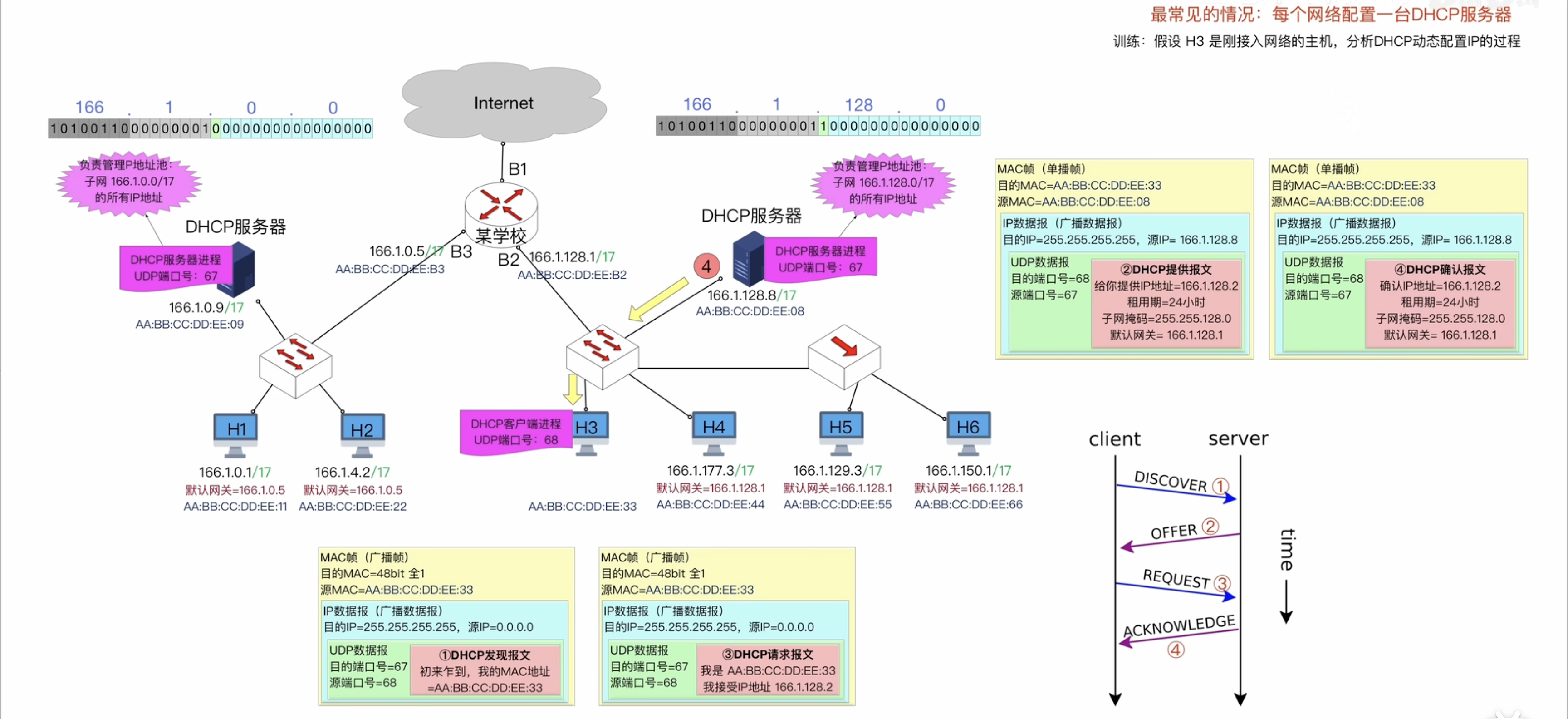 动态主机配置协议DHCP(Dynamic Host Configuration Protocol)常用于给主机动态分配IP地址、配置子网掩码、默认网关等网络相关的参数