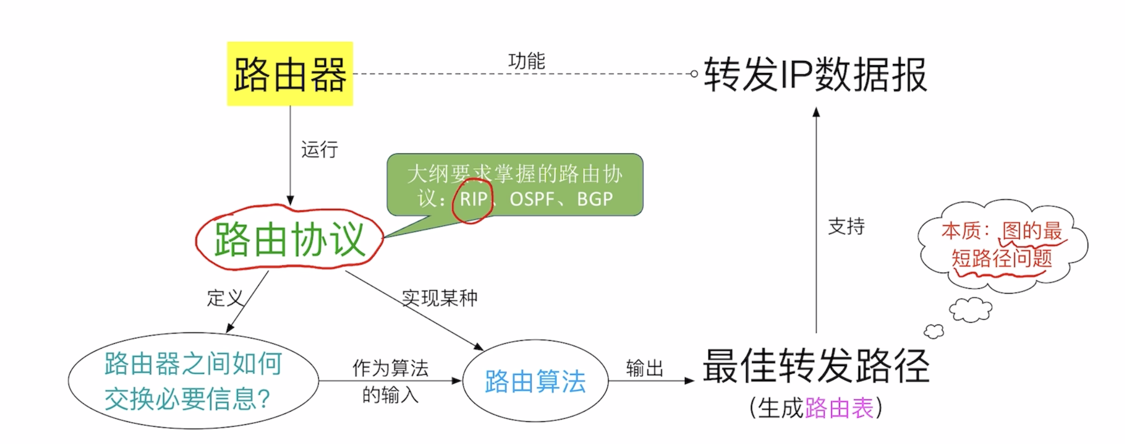 路由协议是路由器之间交换网络信息的语言,目的是让每个路由器都能生成一张完整的路由表。