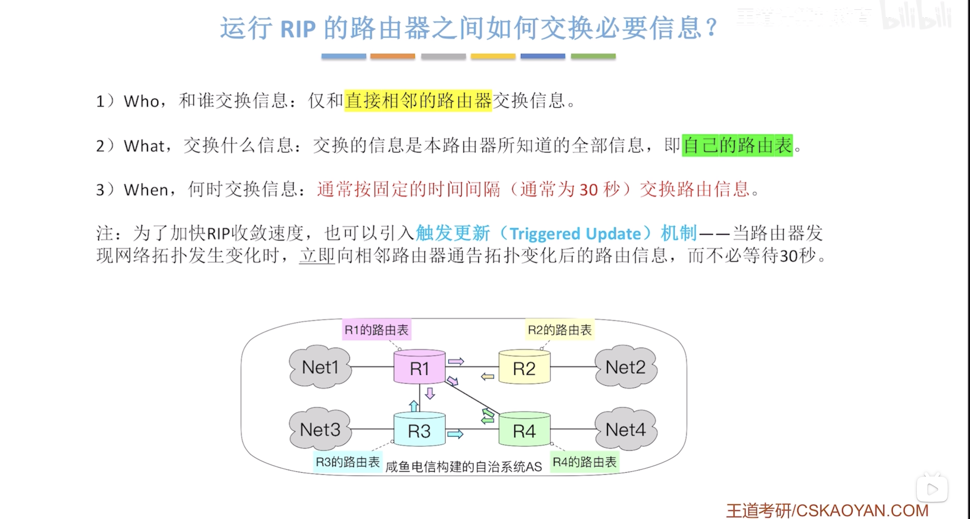 RIP协议是应用层协议,使用UDP传送数据(端口=520)