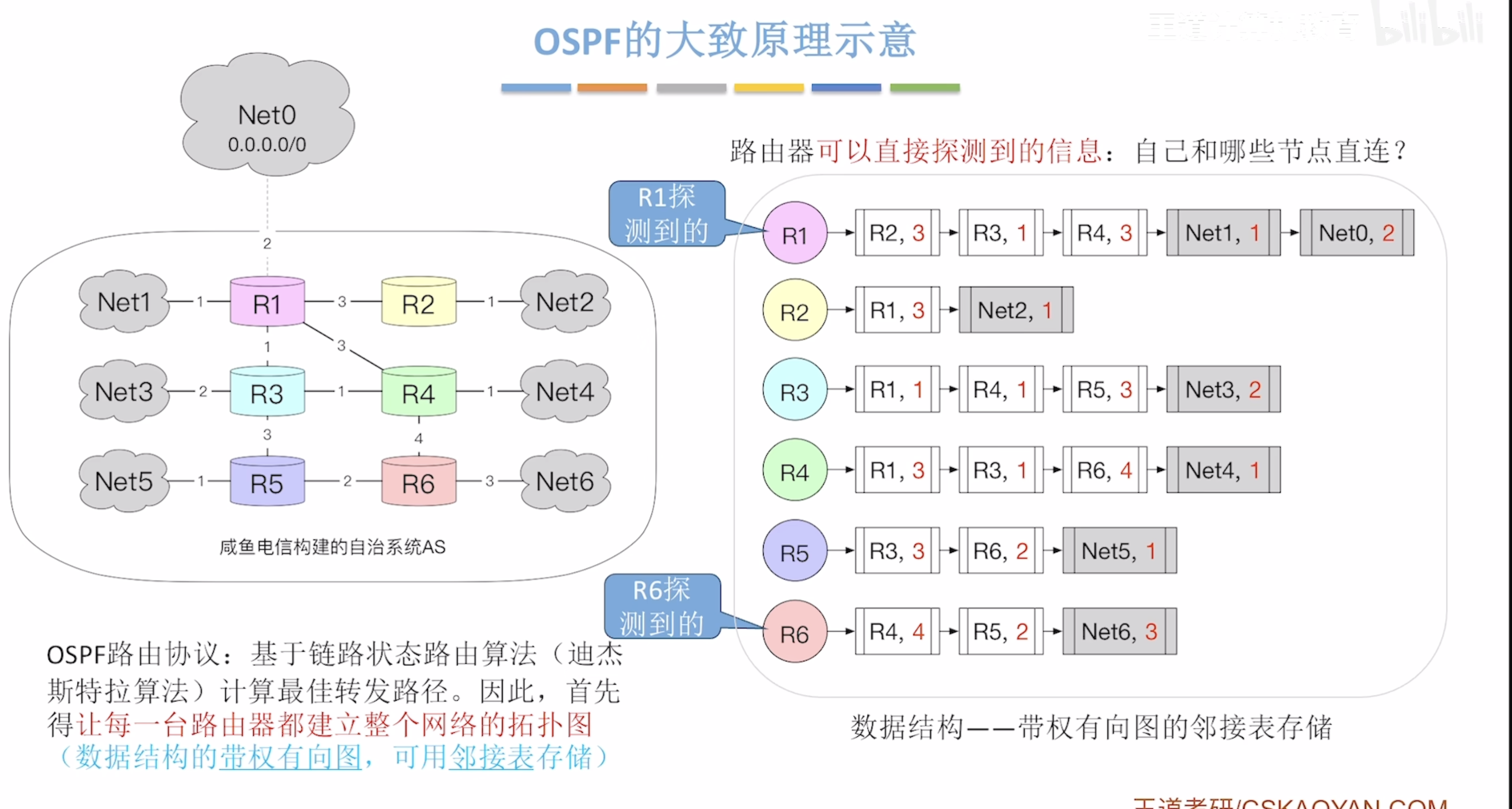 链路状态路由算法:必须知道完整的网络拓扑结构,再使用迪杰斯特拉算法,找到最短路径