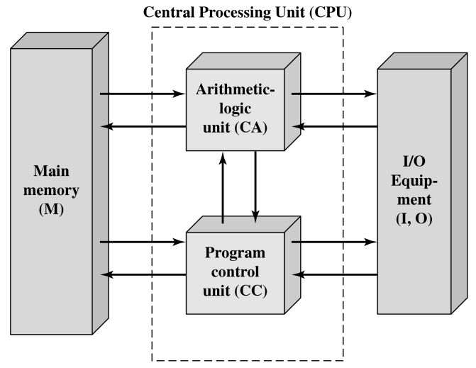 - 冯·诺依曼结构下,程序被转换成二进制代码,和待处理的数据一样,被存入内存。这意味着程序变成了可动态改变的“软件”,而不再是固定的“硬件”。