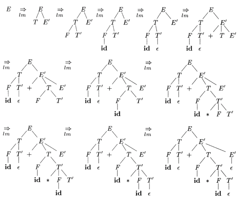 最左推导(Leftmost Derivation):每一步总是展开最左边的非终结符 — 自顶向下