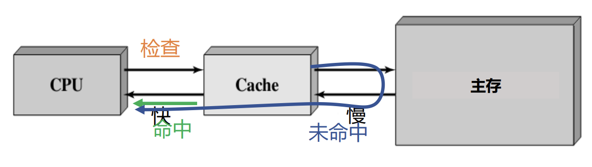 - 未命中(Miss):如果不在cache中, 则将主存中包含这个字固定大小的块(block)读入cache中,然后再从cache传送该字给CPU