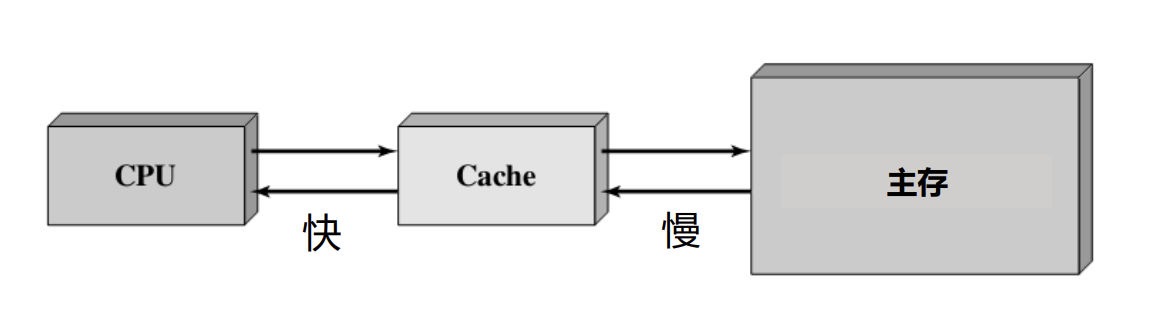 - 在使用主存(相对大而慢)之余,添加一块小而快的cache