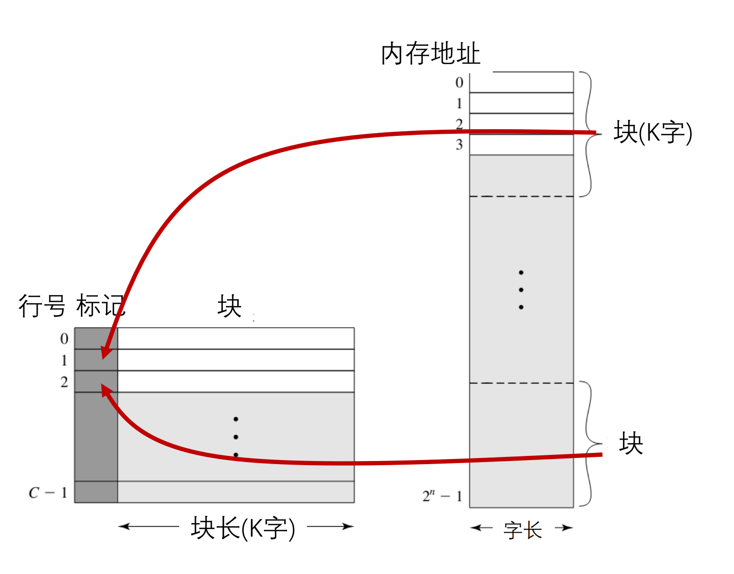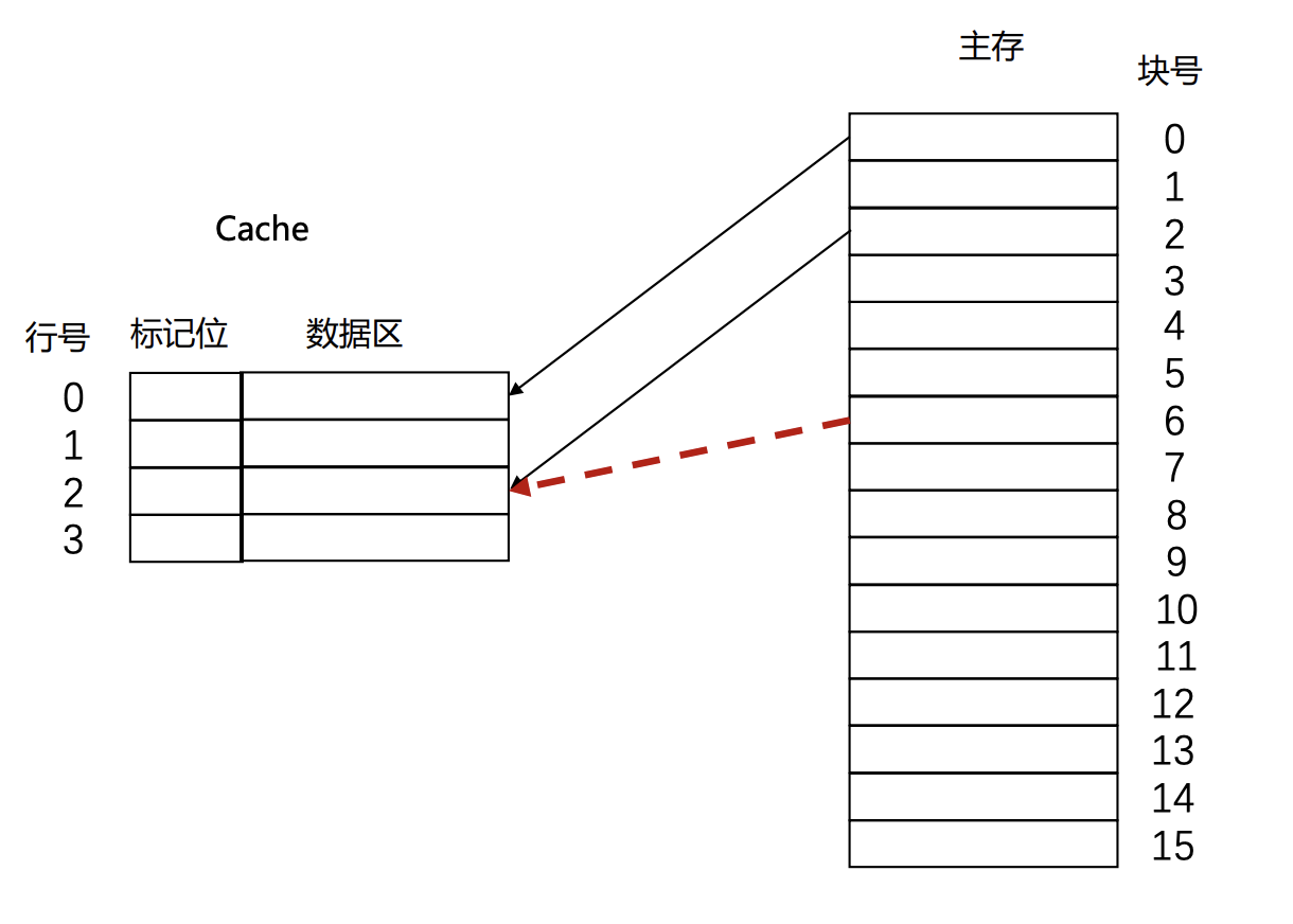 假设$i$是cache行号,$j$是主存储器的块号,$C$是cache的行数 \(i = j\:mod\:C\)